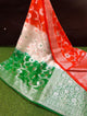 कढ़ाई के काम के साथ सफेद रं...बनारसी गर्म रेशम स्वतंत्रता दिवस साड़ी